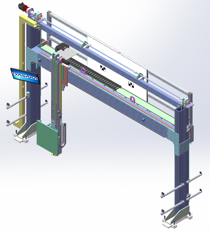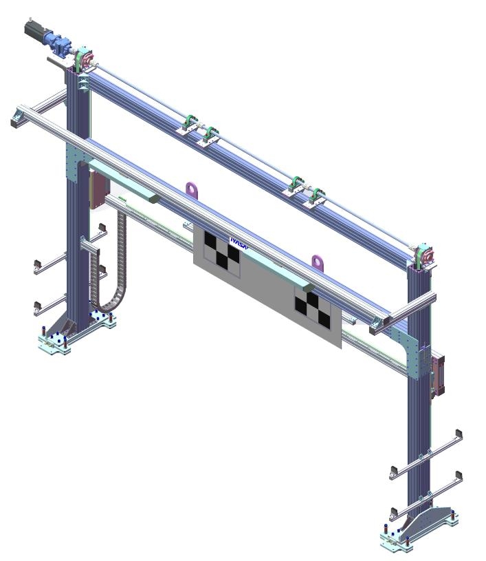 采用铝合金龙门式结构支撑LDW标定目标板,在Z方向上配备西门子伺服电机及直线滑轨,目标板在Z方向上移动采用伺服驱动同步带传动方式,并且精确定位,Z向移动速度大于150mm/s。
